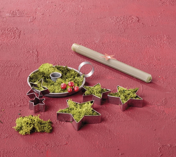 Se desideri una decorazione stabile e riutilizzabile, applica qualche punto di colla a caldo all’interno della formina prima di posizionare il muschio.