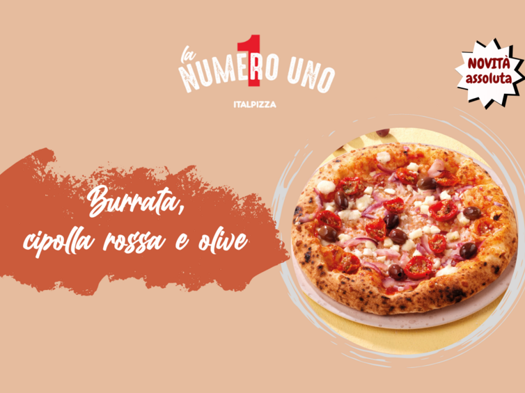 Salsa di pomodoro, pomodorini conditi, burrata, cipolla rossa e olive Riviera.. semplicemente la Numero Uno!