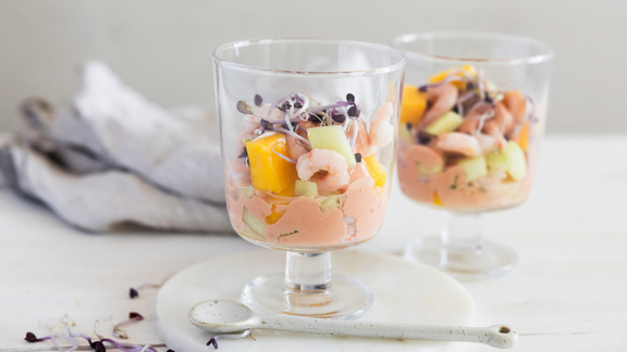 Il cocktail di gamberetti con mango, cetriolo e aneto è l’antipasto perfetto quando vuoi qualcosa di leggero, colorato e super chic.