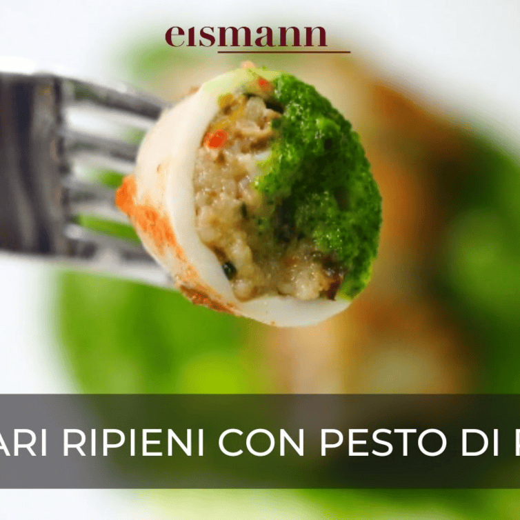 Impiatta i calamari con il pesto sotto e decora con qualche foglia di rucola.