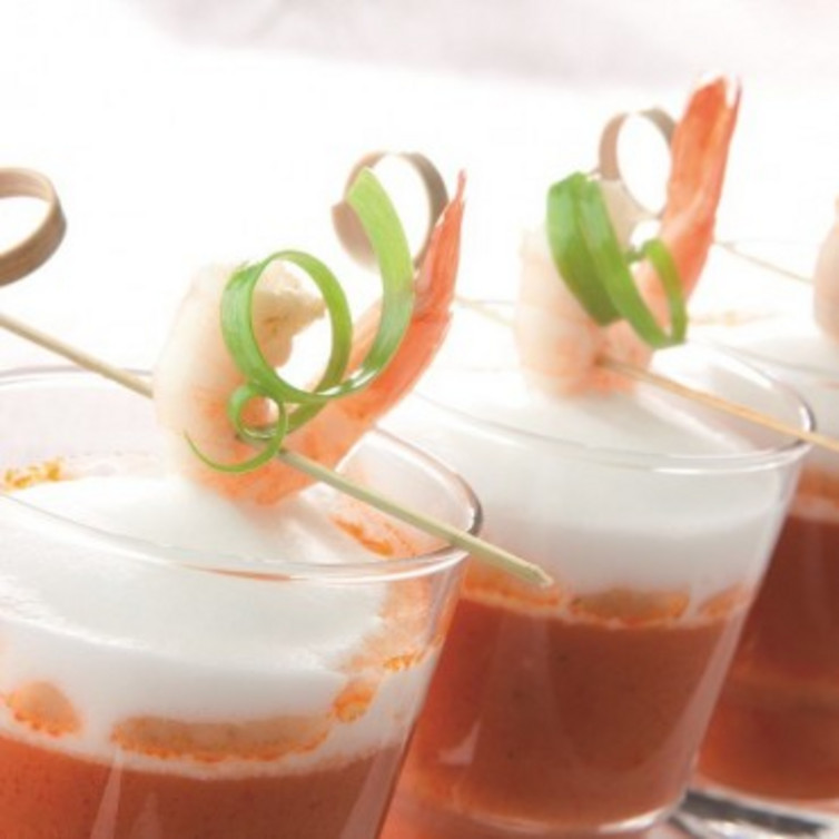 Sorprendi i tuoi ospiti con questo antipasto divertente e originale. La leggerezza della crema fredda di carote si sposa alla perfezione con il gusto delicato delle code di gambero.