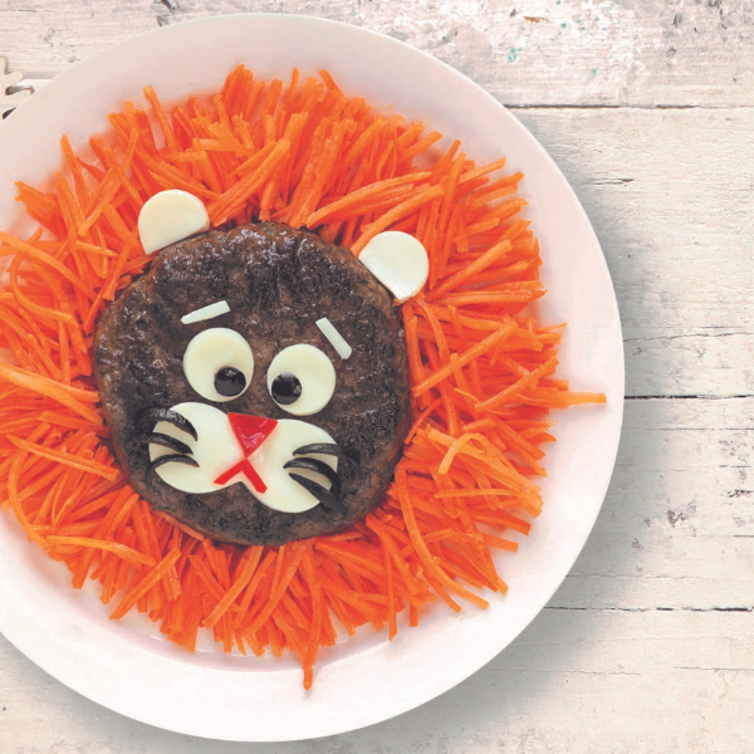Procedi all’assemblaggio del “leoncino” e servi con le carote condite con sale e olio.