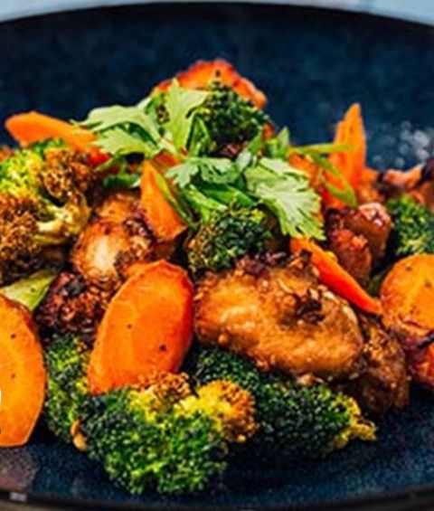 Preparare le verdure: Tagliare i broccoli in cimette di medie dimensioni e le carote in fette da 1 cm. Quindi mettere le verdure tagliate in una ciotola per condirle con olio, sale e pepe fino a ricoprirle bene. Rivestire la friggitrice ad aria con carta da forno o foglio di alluminio, distribuire le verdure in modo uniforme e cuocere a 200°C per 5 minuti o per 15 min alla stessa temperatura nel forno ventilato, fino a quando i bordi non saranno leggermente dorati. Se necessario, aggiungere un minuto o due in più.