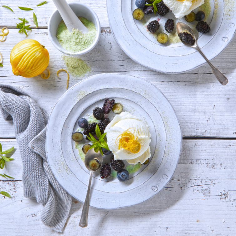 Nuvole di panna al limone e frutti di bosco