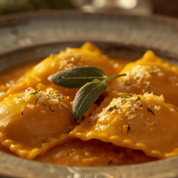 I ravioli di zucca e amaretti affondano le radici nella tradizione dell’Italia del Nord, tra Emilia e Lombardia, dove il gusto dolce e quello salato convivono da secoli. È una ricetta che parla di feste, di mani infarinate e di tavole imbandite.