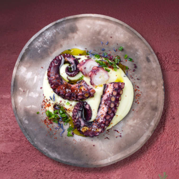 Disponi una generosa quantità di purè di patate su ogni piatto, creando una base morbida. Adagia sopra i tentacoli di polpo arrostiti. Completa con una spolverata di prezzemolo fresco, una spruzzata di limone, e un filo d'olio a crudo. Per un tocco piccante, aggiungi una spolverata di peperoncino o paprika.