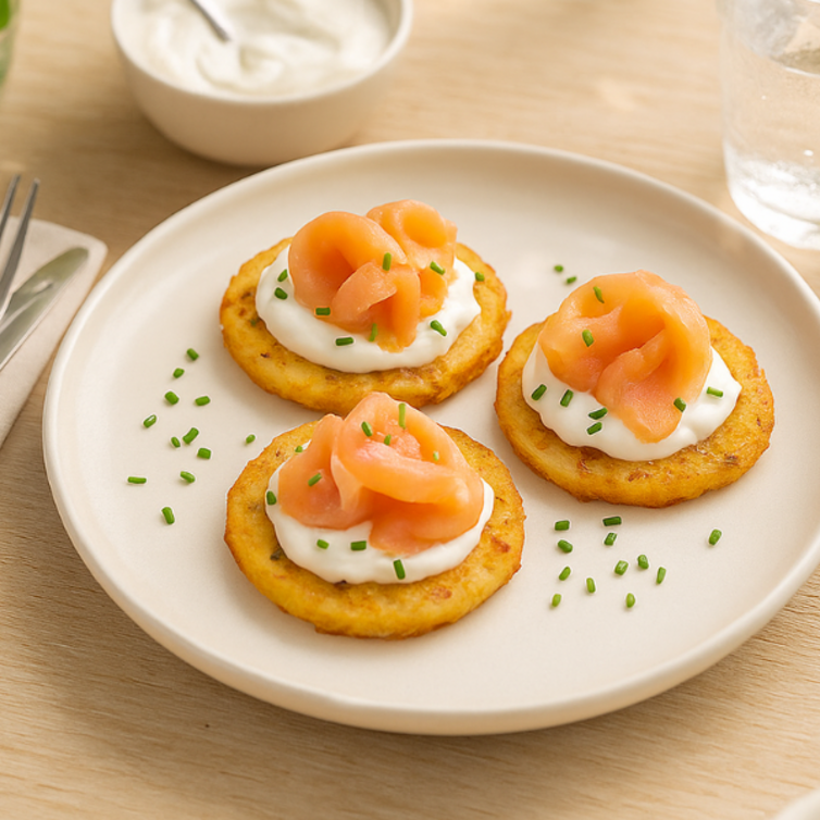Mini Röstì con salmone affumicato e crema di yogurt