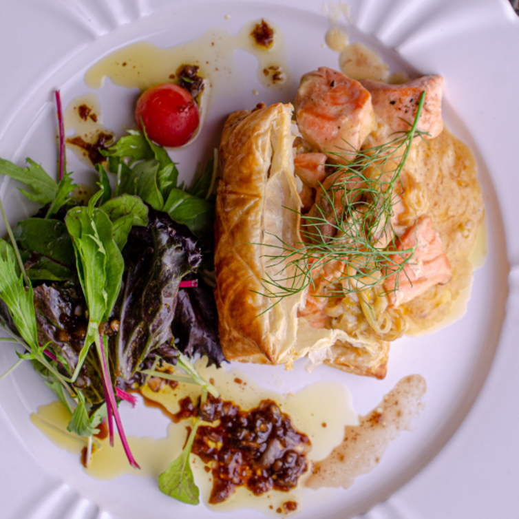 Preriscaldare a 180°C il forno e inserire il Salmone in sfoglia nel forno per 25-30 minuti.