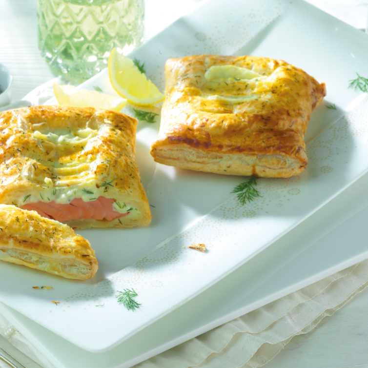 Secondo piatto di pesce saporito ed elegante. Tutta la fragranza della sfoglia in cui è avvolto un tenero filetto di salmone con una crema di panna e formaggio. Impossibile resistere!