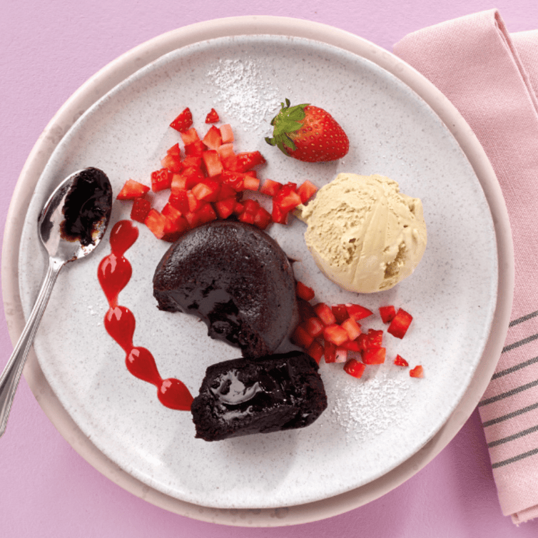 Cuoci il soufflè ancora surgelato per circa 55 secondi nel forno a microonde oppure nel forno ventilato preriscaldato a 180 ° C per circa 17 minuti.