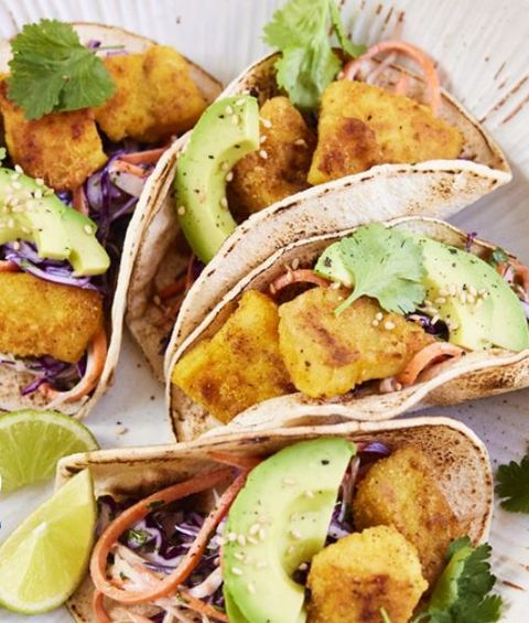 Consiglio dello chef: questa ricetta di tacos è versatile. Le tortillas possono essere sostituite con una tortilla a base di spinaci o barbabietole. Per un ulteriore tocco di originalità, aggiungere avocado a fette e una spolverata di semi di sesamo.