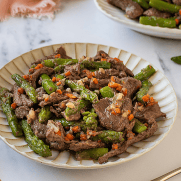 Straccetti di bovino con asparagi