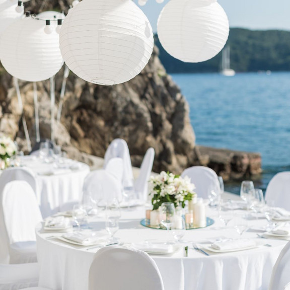 Il bianco domina – non solo negli abiti, ma anche sulla tavola. La mise en place ideale prevede una tovaglia in lino o cotone, piatti in ceramica chiara, bicchieri in vetro trasparente e posate coordinate. I tessuti devono essere naturali, morbidi, senza fronzoli. Per il centro tavola, bastano fiori freschi bianchi, candele basse o lanterne per creare un’atmosfera accogliente.
