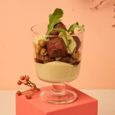 Polpette vegane con crema di hummus e ceci croccanti