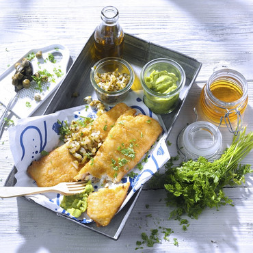 Tempura di merluzzo con schiacciatelle agli spinaci