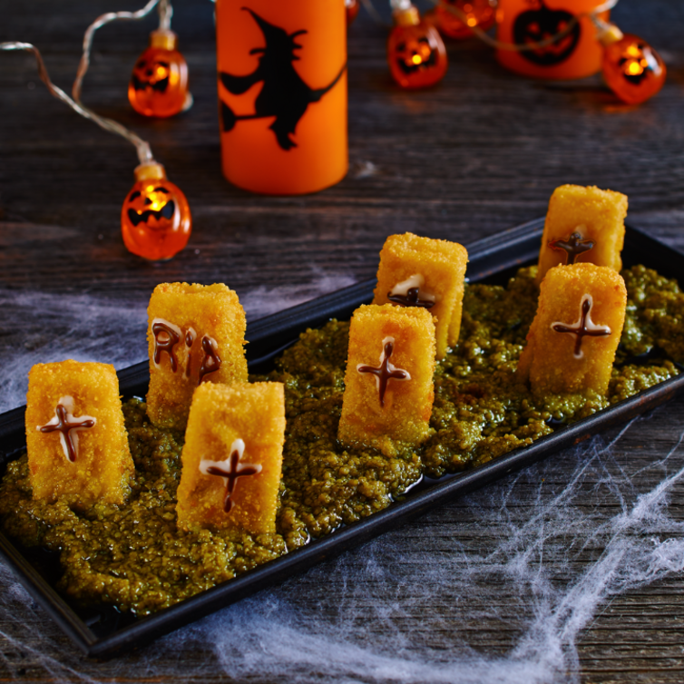 Queste lapidi sono spaventose, ma scommettiamo che i bastoncini di pesce non sopravvivranno a lungo! Prepara con noi questa mostruosa ricetta di Halloween.