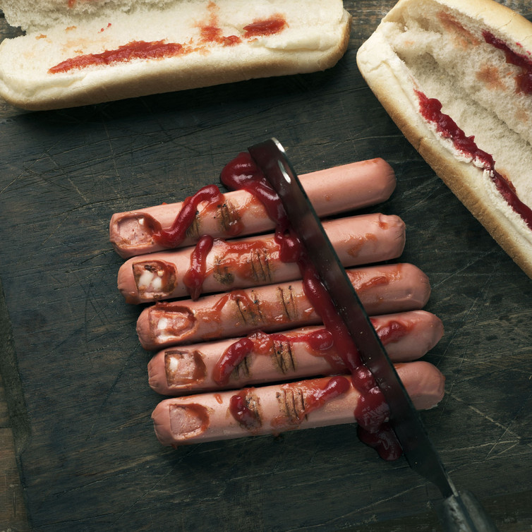 Incidi i wurstel e crea l’unghia rimuovendo una piccola parte dal wurstel. Scotta leggermente in padella e decora con salsa ketchup o barbecue.
