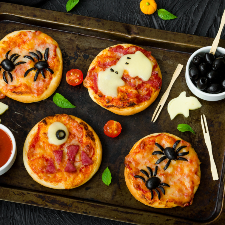 Preparazioni calde: se preferisci qualcosa di caldo, i prodotti surgelati Eismann come le sfoglie ripiene o i mini pizzette margherita possono essere decorati a tema per creare deliziosi antipasti caldi. Basta un forno per trasformare piatti semplici in vere e proprie opere d’arte di Halloween!